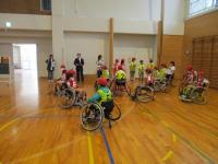 10月21日(火)に総合の福祉の学習でゲストティーチャーとして岩崎さん、伊藤さんをお招きし、車いすバスケットボール体験をしました。