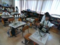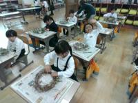 午後からは、国語科「未来につなぐ伝統工芸品」、社会科「郷土の伝統・文化と先人達たち」の学習でゆのくにの森へ行きました。輪島塗の沈金、九谷焼の絵付け、金箔貼り体験の3つのグループに分かれて体験しました。子どもたちからは「細かくて難しい!」「プロの人はすごい!」「作品作りって楽しい」など様々な声が聞こえてきました。