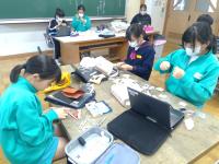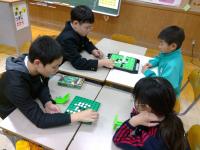 ロボットを動かしながら,コンピュータ等の仕組みやプログラムについて知る学習を行いました。今回は,知楽市のみ無さんに来ていただき,教えていただきました。自分たちでプログラムを考え,ロボットを動かし,その動きを見て,プログラムを修正し,またロボットを動かし・・・ と試行錯誤しながら,理想とする動きに近づくよう頑張っていました。