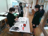 ゲストティーチャーの竹中先生が来校され,書き初めを習いました。子どもたちは,うまく書くポイントを教えてもらい,より美しい字を書けるようになっていました。冬休みには,3~4枚の宿題が出ます。家で練習し,令和8年1月7日の書き初め大会で,心を込めた『将来の夢』を書いてくれることを願っています。