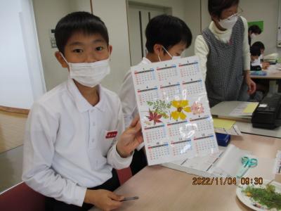 4年生が総合の学習で地域のお年寄りの方々に押花カレンダーを贈ることとなり、創作押花インストラクターの葛葉タカさんに講師としてお招きしました。子どもたちは用意して頂いた材料の押花のきれいなことに驚くとともに、創作活動を楽しんでいました。後ほど完成したカレンダーにメッセージを書き込み贈る予定です。