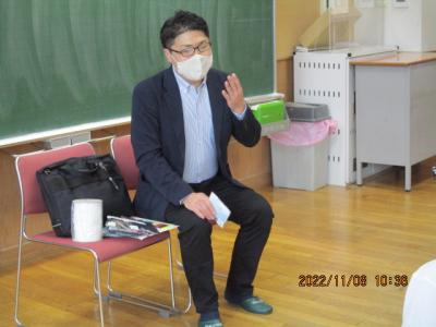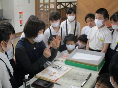 繊細なタッチの絵と味わいのある文字の組み合わせの絵手紙に児童は感心していました。國近さん、どうもありがとうございました。