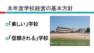 これからも学校の教育活動をリアルタイムに発信していくようにしていきます。スマートホンでも見やすいように、通信量が抑えられるように軽くする、写真を必ず添えるようにしてビジュアルで魅力あるホームページにしていきます。どうぞ今後ともよろしくお願いします。