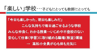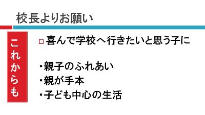 見てくださってありがとうございます。今後も学校の様子が良く分かる、家庭でお子さんと話題を共有できるようなHPを提供していきます。ぜひ、まだご覧になっていないお知り合いに広めていただければと思います。