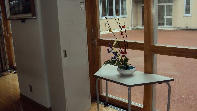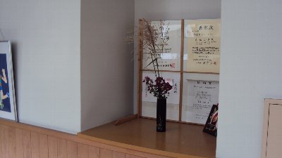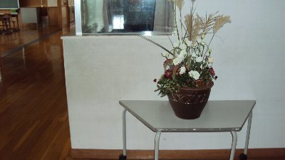 学校ボランティアの桜井さんにまた花を生けていただきました。中央にはススキがあり秋らしさがいっぱいです。いつもありがとうございます。