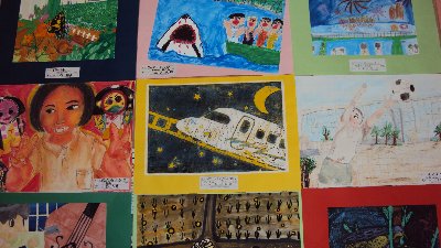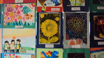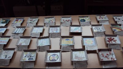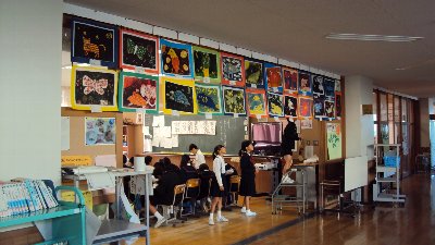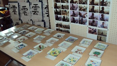 先週からお知らせしていますが、校内には子どもたちの作品がたくさん掲示されています。4年生の廊下には「九谷焼き」の作品も届きました。