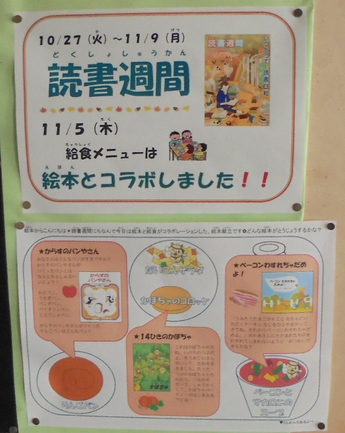 読書と給食がコラボします。