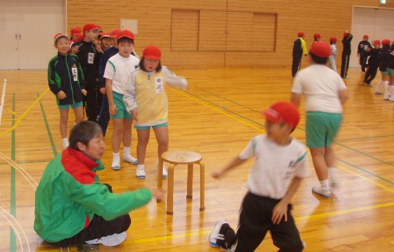 授業では体育の時間を有効に使い体力づくりをしています。低学年の時間を中心に体育の授業の補助をしていただいてゲーム的な運動や跳び箱がみんな跳べるように補助していただいています。今回もクラブパレットより西田先生、安達先生にお願いしています。