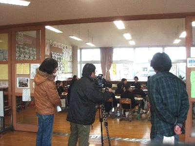 かほく市ではきめ細かな学習指導を推し進めるため、本来なら40人学級である高学年において35人学級(35人を超えるとクラスが増える)を実施しています。そのことが住みよい街作り、定住促進につながっているようです。その広報番組のための取材です。放送日は3/1と3/12の予定です。放送局はテレビ金沢です。