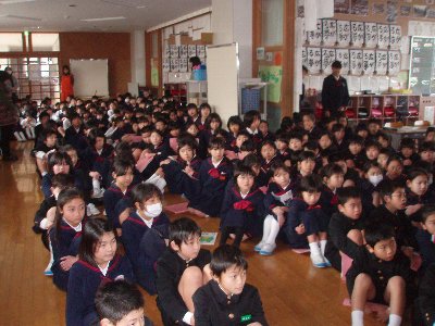 冷たい雨の降る中、早朝より来校いただきありがとうございました。2限目は全校集会でした。集会にも大勢のみなさんに参加いただきありがとうございました。子どもたちはいつもにまして元気に今月の歌を歌っていました。
