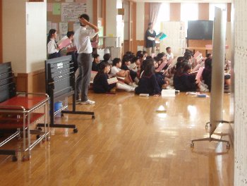 最終回は、地震の後津波が起こりそうになったら・・・という訓練でした。子どもたちは落ち着いていつもの通り決められた場所に逃げることができました。なるべく高いところ、3階へ400名が3分30秒で避難を完了しました。