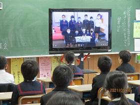 本日は、土曜日ですが、授業参観を実施しました。1限目は、学校集会ですが、感染対策のため、各教室でテレビ画面での参加となりました。始めに書き初め大会の表彰を行い、学校長、今月の生活目標、保健委員会の発表、今月の歌などがありました。