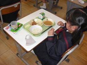 今日から1年生は給食を開始しました。6年生が配膳を行い、準備をしてくれました。いただきますをして、給食について様々なお話を、坂井栄養教諭から聴きながら食べました。みんなお行儀よく食べていました。今日は、ご飯と味噌汁、ポテトサラダ、鳥の唐揚げ、牛乳でした。たくさん食べて大きくなってくださいね。