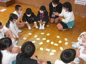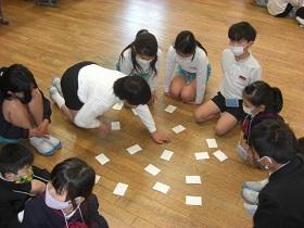 今日の昼休みは、なかよしグループで新年会を行いました。お正月らしく、高学年リーダーがカルタ取りや福笑い、伝統の剣玉などを考えて実施してくれました。中には、手作りカルタもありました。少人数で、短い時間ですが楽しく過ごしました。