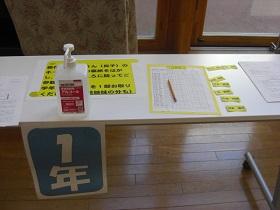 コロナ対策としての登校時の健康チェックを行っていますが、石川県のコロナ感染状況が悪化していることから、今日から再び教室に入る前の玄関で行うことにしました。健康カードを担当者に見せて、体温と健康状態を確認させていただきます。検温忘れがあった場合もそこで行います。ご理解をお願いします。