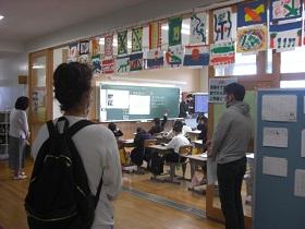3年生以上の学年では、英語の免許を持った専科教員がアシスタントと共に2人体制で英語の授業を行っています。今日の4年生は、お天気の表現を学習していました。ヒントを出してどんなお天気かを当てる形式で行いました。やり方を覚えるととても楽しそうに会話をしていました。