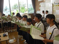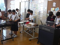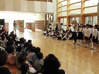 はじめに、高松中学校吹奏楽部の皆さんが来校くれ、「パプリカ」など児童にとって親しみのある曲を数曲演奏してくれました。とてもすばらしい演奏で、児童は暑さも忘れて聞き入っていました。また、地域の方も10人ほど来てくださり、見事な演奏に感心されている様子でした。学校長が戦争と平和について話した後、最後に、小中合同で、「世界に一つだけの花」を合唱しました。