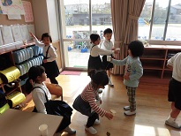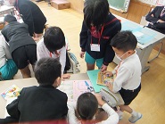 時間をかけて秋の木の実を集め、どんなゲームや遊びにしたら喜んでもらえるかを一生懸命に考えて話し合っていました。また、あいさつの練習も大きな声ではっきりと言えるように何度も練習を重ねていました。当日は、園児の皆さんと一緒に楽しい時間を過ごすことができました。