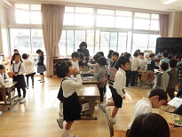なかよしグループ単位で各教室を回り、そこに書かれている様々な「指令」をクリアしていくという活動です。指令は,どれも仲間同士協力して行うものばかりです。6年生のリーダーがチームをまとめながら楽しく活動できました。