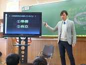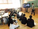 その後、今回は、高松中学校の校長先生と生徒会の皆さんが、ネット・ゲームと正しくつきあうために、自作のビデオを使って説明をしてくれました。児童は、ゲームのやり過ぎに注意することなど感想を述べていました。小中が連携して取り組むことの大切さを感じました。高松中学校のみなさん、来てくれてありがとうございました。なお、この様子については、テレビ金沢の取材を受けました。