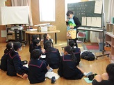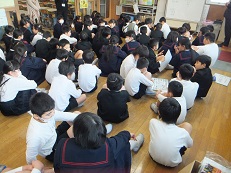 本日朝学習の時間は、各教室において職員によるミニお話会です。