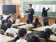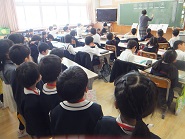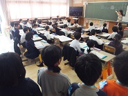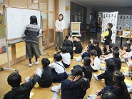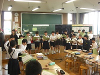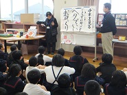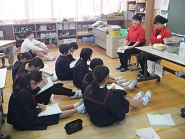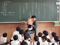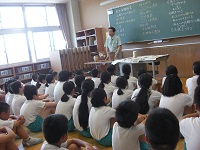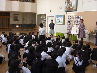 学校では、児童の豊かな心を育むための読書活動を推進しています。その一環として、「読み聞かせ」活動を行っています。図書館の向先生がお話をしたり、先生方が各教室で一斉に行ったり、お話ボランティアさんに来ていただいたりと、様々な形で行うので、児童は楽しみにしています。