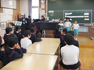 その後、楽器の特徴や使い方を教えていただき、、音楽に合わせて楽しく音出しをしました。児童は、目を輝かせながら先生の言葉に耳を傾け、リズムを取りながら練習しました。喜多先生、ありがとうございました。