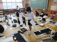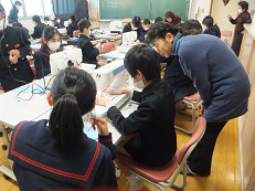 5年生は、家庭科の時間に初めてミシンを使う学習活動に挑戦しました。