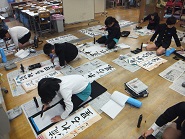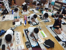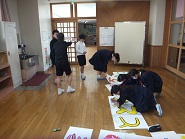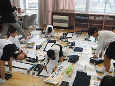 書写外部ティーチャーの城村先生と竹中先生に教えていただきながら、全体のバランスも考えて力作を仕上げています。