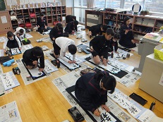 お正月に向けて、各学級で書き初めの練習が行われています。