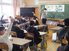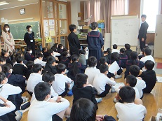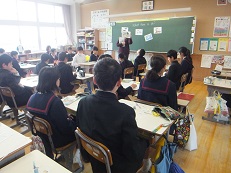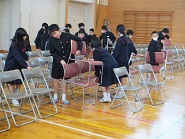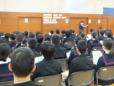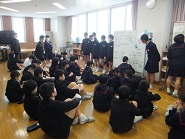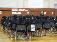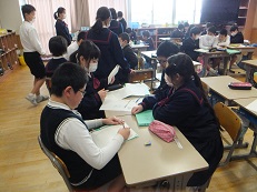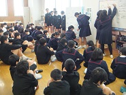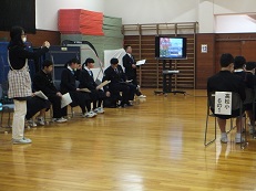 また、六年生は、高松中学校での新入生入学説明会に参加し、緊張しながらも、生徒会で活躍している先輩からの学校紹介や中学校の先生方からの話を一生懸命に聞いていました。