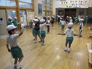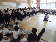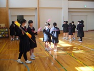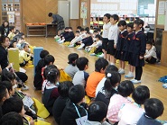 ちょっとお兄さんお姉さんの気分を味わいながら、校歌やダンスを披露し、学校案内や学習姿勢なども丁寧に優しく教えてあげることができました。