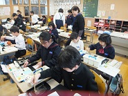 今日は、4年生のプログラミング学習の日です。次年度から実施する新学習指導要領に先駆け、かほく市では、4年生以上で総合学習の情報教育として位置づけられています。