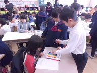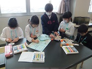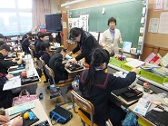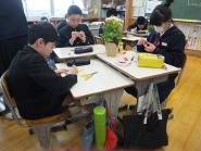 1月11日(木)に、4年生は、総合的な学習の時間の「福祉」の学習の一環として、地域の絵手紙サークル「虹」の皆さんから教えていただきながら絵手紙に挑戦しました。それぞれが一生懸命描いたハガキは、後日地域のお年寄りの方にお渡しする予定です。