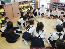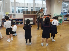 担任以外の先生から本の読み聞かせをしてもらっています。