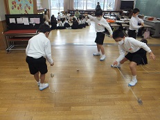 1月15日から19日までなわとび強化週間です。子どもたちは、学校中至るとこで、チャレンジカードに記入しながら、いろいろな縄跳びの技に挑戦しています。
