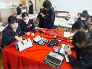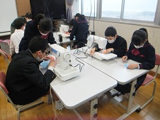 地域からミシンの先生方をお願いして教えていただきましたが、どの子も初めてとは思えないくらい上手にまっすぐミシンがけができました。