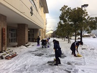玄関前も積雪で歩きにくくなっていますが、子どもちが協力して除雪してくれています。