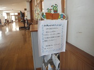 高松小学校の玄関ホールには、地域の方に教えていただきながら作ったクリスマスツリーと門松が飾られています。