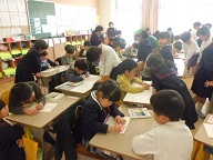 なかなかうまく書けないで困っている子がいても、5年生がしっかりとサポートしてくれました。