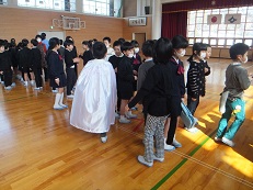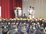今日は、昼休みに2年生と5年生に「やまんば」さんがお話をしてくださいました。ろうそくの火が点り、厳かな雰囲気の中で、児童は、お話の世界に引き込まれていました。