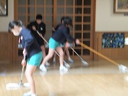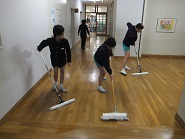 なかよしグループのリーダに教えてもらいながら新しい掃除場所でも一生懸命掃除に励んでいます。