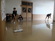まずはサイドのオーバーフロー、続いて壁、そして床、最後に仕上げ磨きとを行いました。みんなで力を合わせた結果、ぴかぴかになりました。