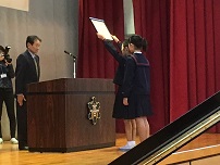 学校でのリハーサルの時よりもさらに明るくはきはきと力強く自分の思いを語ることができすばらしい発表になりました。その結果ライオンズ賞を受賞することができました。家でもずいぶん練習を重ねたそうです。努力はやっぱり大切ですね。本当におめでとうございます。
