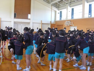 高松小、大海小の5,6年生の希望者が多数参加し、市スポーツ推進委員の皆さんの指導のもと、動作の細かい点を確認しながら約1時間、和気藹々と楽しく体操することができました。ご指導ありがとうございました。