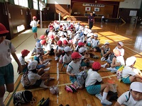 7月1日(月)夏休みのラジオ体操に向け、高学年リーダーの育成のため、市教委主催の高松中校区標記講習会が本校体育館で行われました。