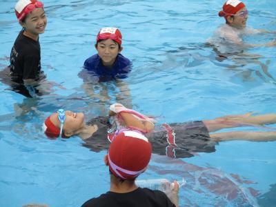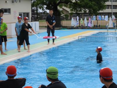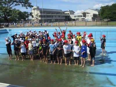 本日でプールの授業も最後なので、学年で着衣泳を行いました。浮く練習、泳ぐ練習、助ける練習等、自分やまわりの人たちの命を守る練習を体験しました。
