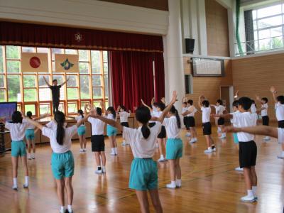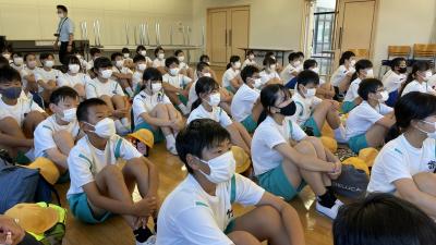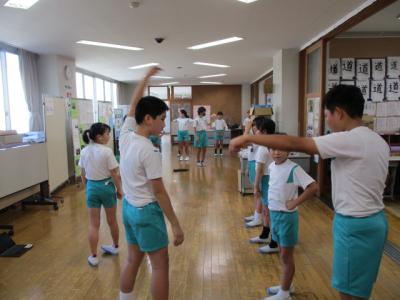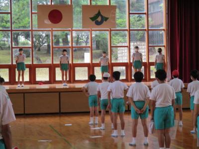 夏休みを前に、ラジオ体操の練習をしました。久しぶりのラジオ体操第2の動きに、最初はぎこちなかった児童も最後にはスムーズな動きになりました。各地区では3年ぶりにラジオ体操を行うと伺っていましたが、最近の感染拡大を受け、急遽中止した地区もあるようです。早期の終息を願うばかりです。