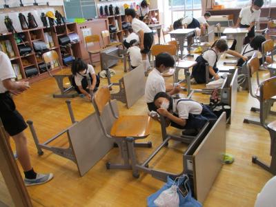 各クラスで自分たちが使った机、椅子、ロッカー、下駄箱などの掃除を行いました。どの児童も黙々と清掃活動を行い、きれいにすることができました。夏休み中も同じように掃除などのお手伝いを一生懸命できるといいですね。