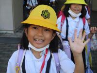 地震や台風、不審者が現われた時など、緊急時に備えて、自分たちの身を守って安全に家まで帰る訓練(集団下校訓練)を行いました。 今日は今年度初めての訓練なので、同じ通学路を通る仲間をたしかめて、通学路の途中で危険なことがあった場合に、助け合いながら安全に登下校をできるよう指導を行いました。 その後、6年生を先頭に、担当の職員が付き添いながら実際に下校しました。